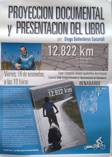El próximo Viernes día 18 a la 19 horas en el Espacio Joven de Benabarre: Presentación del libro y el documental 12822 Km a cargo de Diego Ballesteros.