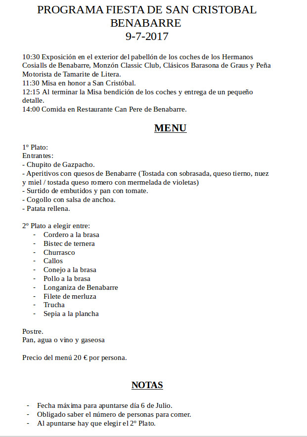 Además el domingo tendrá lugar el tradicional encuentro de coches clásicos con misa y comida para los participantes. Mas info en el EVENTO de Facebook