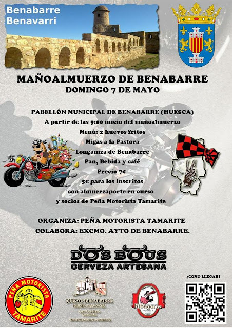 Un año mas, la Peña motera de Tamarite organiza su tradicional Mañoalmiuerzo en nuestra localidad. El domingo a partir de las 9 en el Pabellón de Benabarre. Mas info en el Evento de Facebook: Clik AQUÍ