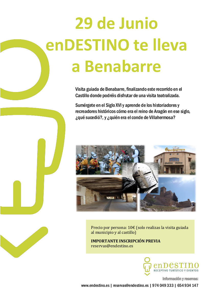 Esta actividad está abierta a turistas y vecinos de Benabarre. Los interesados pueden obtener más información en www.endestino.com o hacer la reserva a través de reservas@endestino.es o el teléfono 974 049 333.