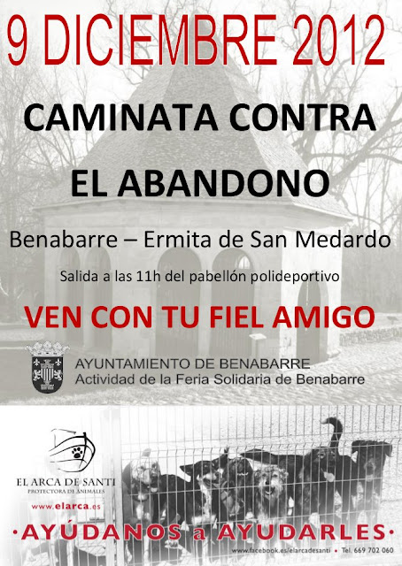 La segunda actividad se realizará al día siguiente. Es una caminada popular desde el pabellón hasta san Medardo para sensibilizar a la población sobre el problema del abandono de animales. Esta excursión está abierta a todo el mundo y cuenta con la colaboración de la protectora se animales EL ARCA DE SANTI de Monzón (www.elarca.es)