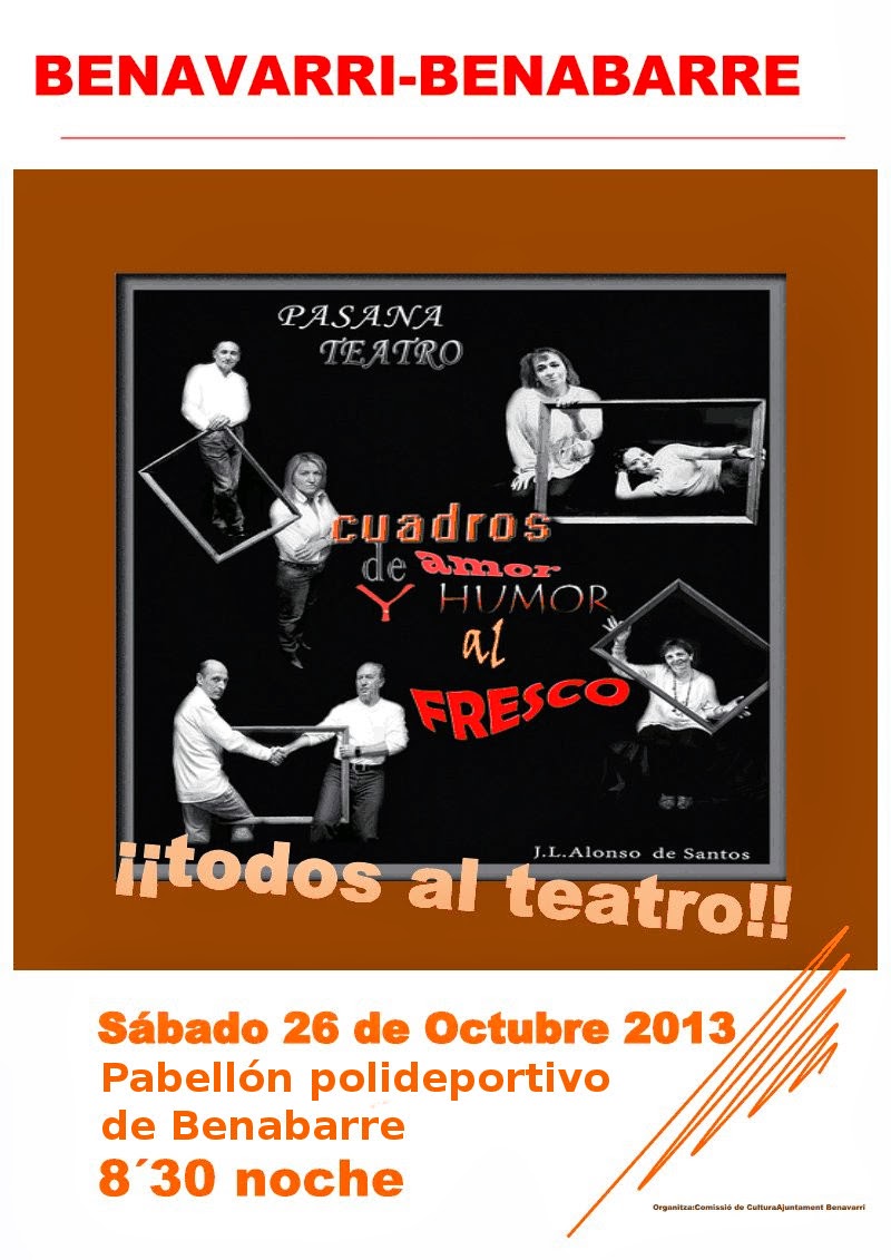 Este sábado tenemos representación. La compañía Oscense Pasana Teatro nos trae su obra CUADROS DE AMOR Y HUMOR AL FRESCO: