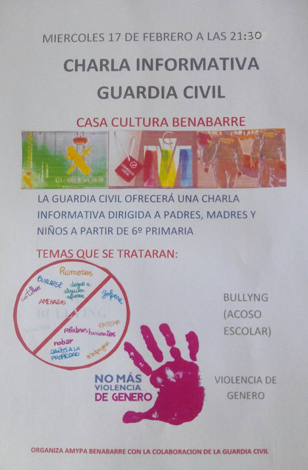 CHARLA EN LA ESCUELA DE BENABARRE Posted on marzo 15, 2018 by Turismo Benabarre Benavarri El AMPA del cole de Benabarre organiza esta charla, impartida por la guardia civil sobre los peligros de Internet: