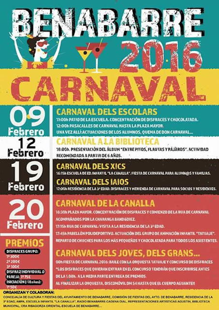 CARNAVAL DE BENABARRE Posted on febrero 9, 2016 by Turismo Benabarre Benavarri Estas son las actividades que se están organizando para celebrar el Carnaval. La animación empieza hoy con el Carnaval del Cole. Comparte esta info en tus redes socialesFacebookTwitter