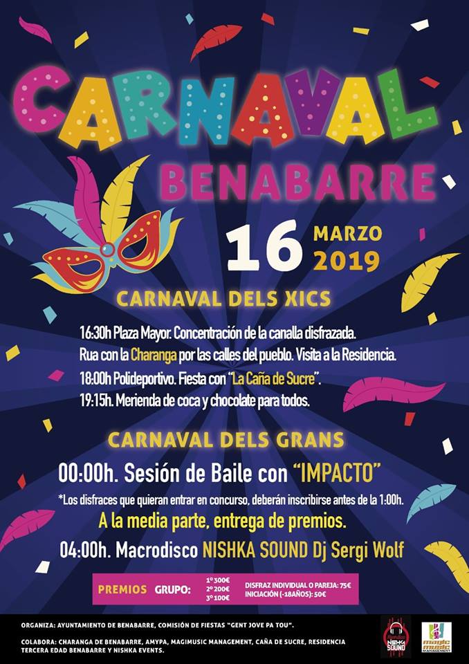 La Rúa del «Carnaval dels Xics» estará amenizada por el grupo de tambores local. A las 16.30 inicio del pasacalles de disfraces en la plaza Mayor y tambores hasta la Residencia de Mayores Imsarte, y de allí al Polideportivo, para enlazar con la fiesta infantil de la Caña de Sucre.