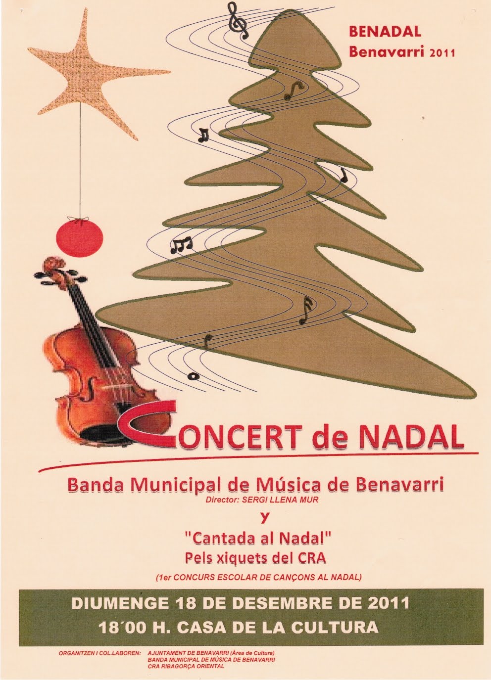 CONCERT DE LA BANDA MUNICIPAL DE MÚSICA DE BENAVARRI (Director: Sergi Llena Mur) i «CANTADA DE NADAL» pels xiquets del CRA (1r concurs escolar de cançons nadalenques).