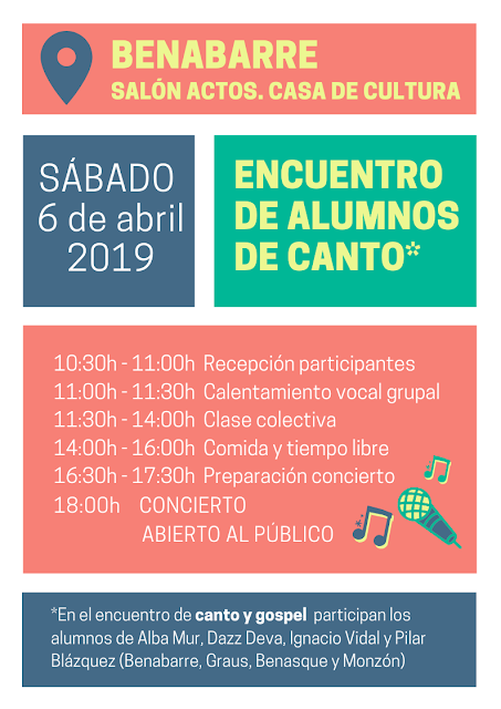 Sábado 6 de abril, alumnos de canto y gospel de alba Mur, Dazz Deva, Ignacion Vidal y Pilar Blázquez.